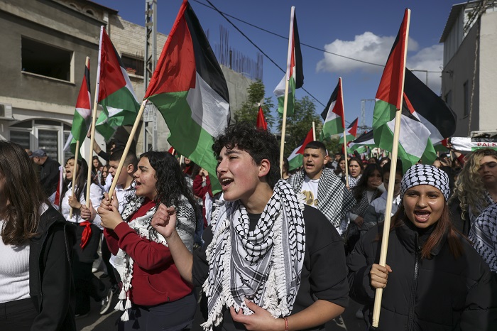 جانب من المسيرة في سخنين (تصوير: أ ف ب)