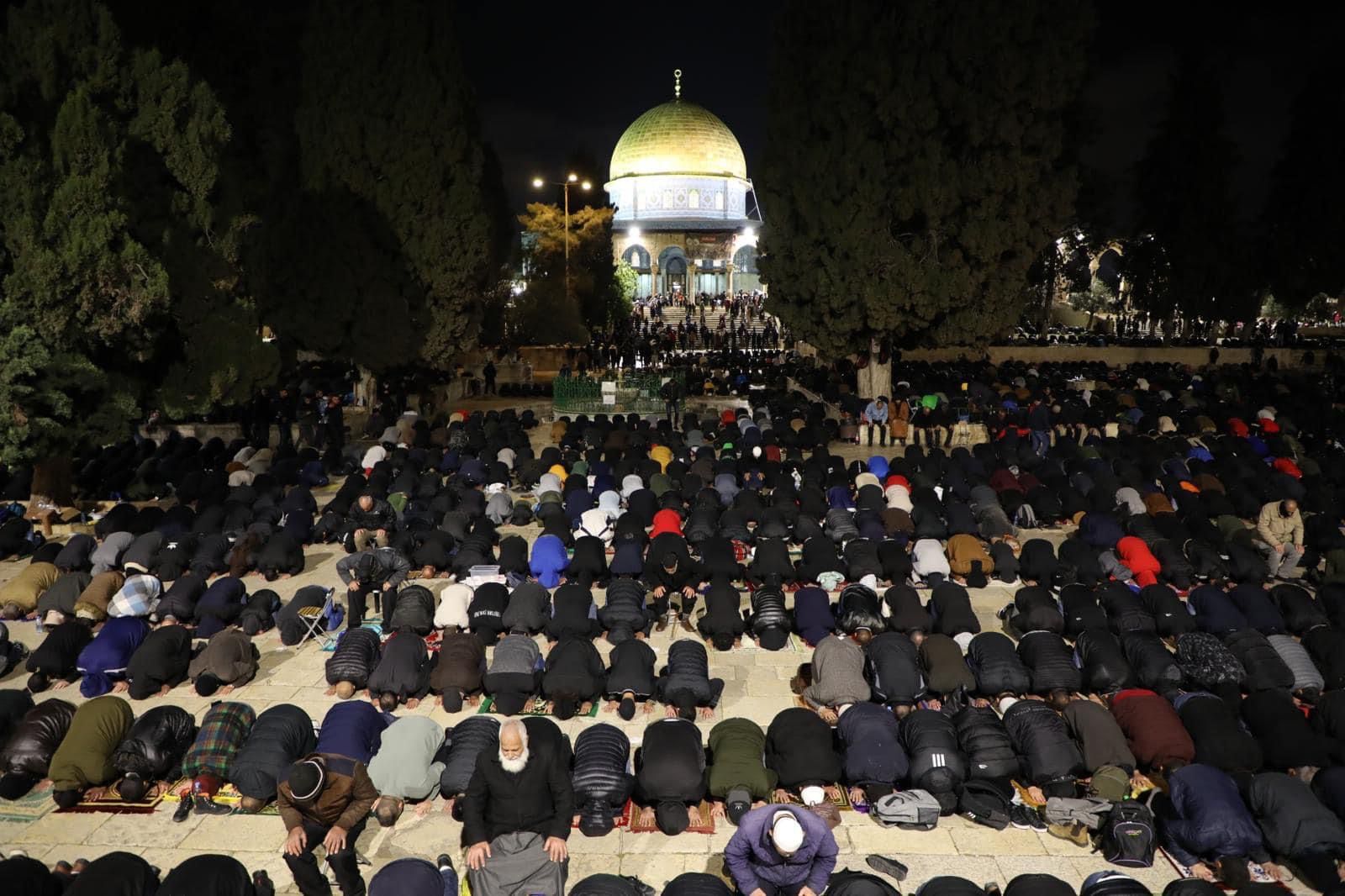 القدس 31-3-2023 وفا- أدى نحو 150 ألف مصل، صلاة العشاء والتراويح، اليوم الجمعة، في المسجد الأقصى المبارك.