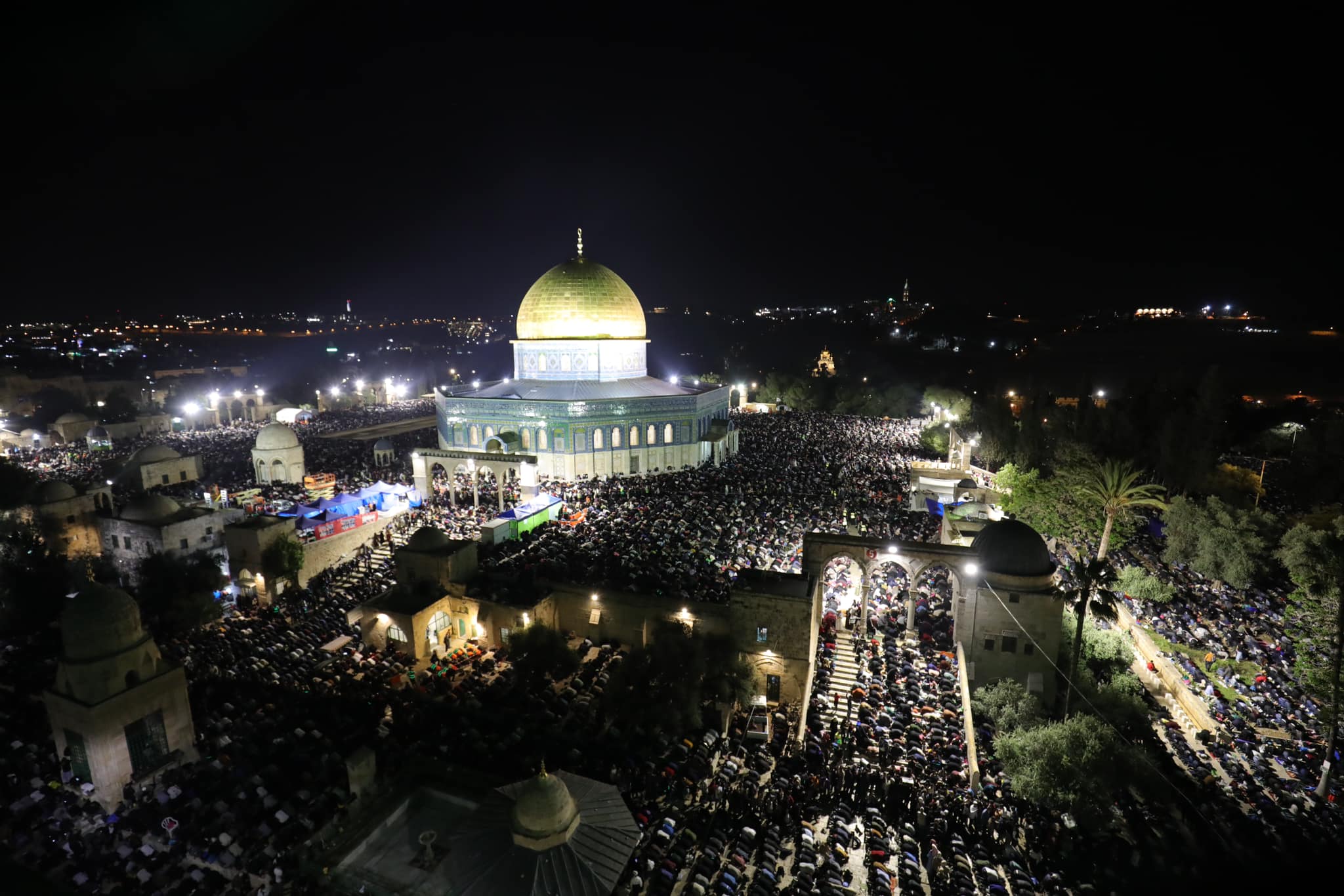 وأفادت دائرة الأوقاف الإسلامية في القدس، بأن نحو 280 ألف مصل توافدوا إلى المسجد الأقصى المبارك لإحياء ليلة القدر، وسط إجراءات مشددة فرضتها سلطات الاحتلال الإسرائيلي على المدينة المقدسة، كما أدوا صلاتي العشاء والتراويح في رحاب المسجد الأقصى.