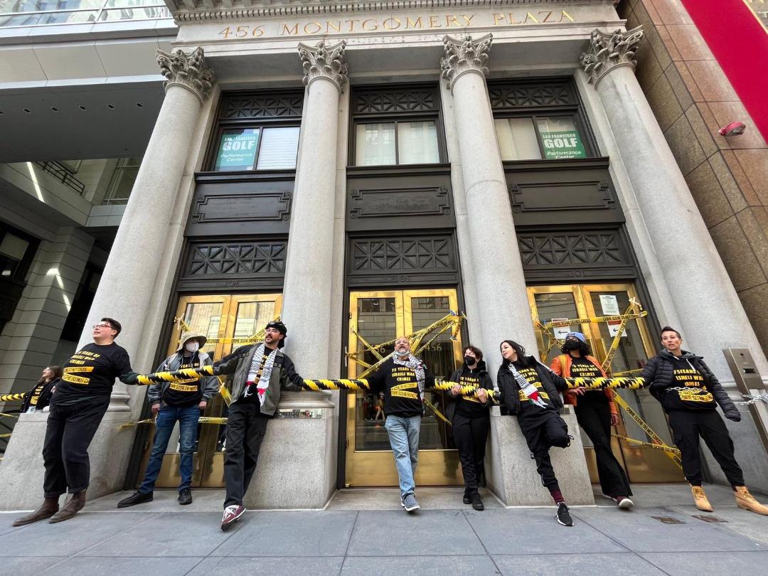 واشنطن 18-4-2023 وفا- أغلق أنصار الحق الفلسطيني في الولايات المتحدة الأميركية مداخل القنصلية الإسرائيلية في مدينة سان فرانسيسكو بولاية كاليفورنيا الأميركية بسلاسل حديدية.