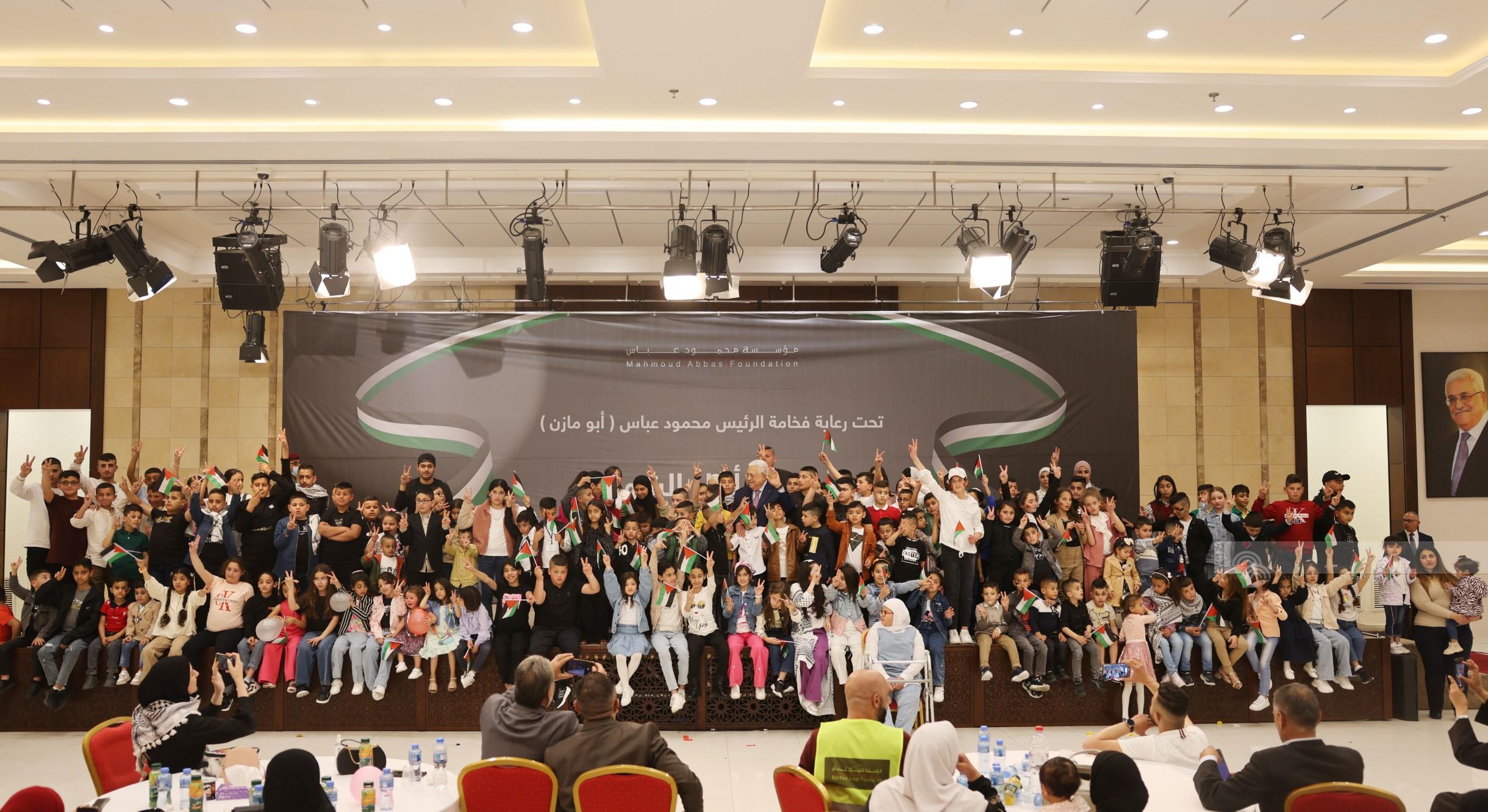 رام الله 23-4-2023 وفا- بحضور رئيس دولة فلسطين محمود عباس، أقامت مؤسسة محمود عباس، مهرجان أبناء الشهداء في مقر الرئاسة بمدينة رام الله، وعبر تقنية الفيديو في مدينة غزة.