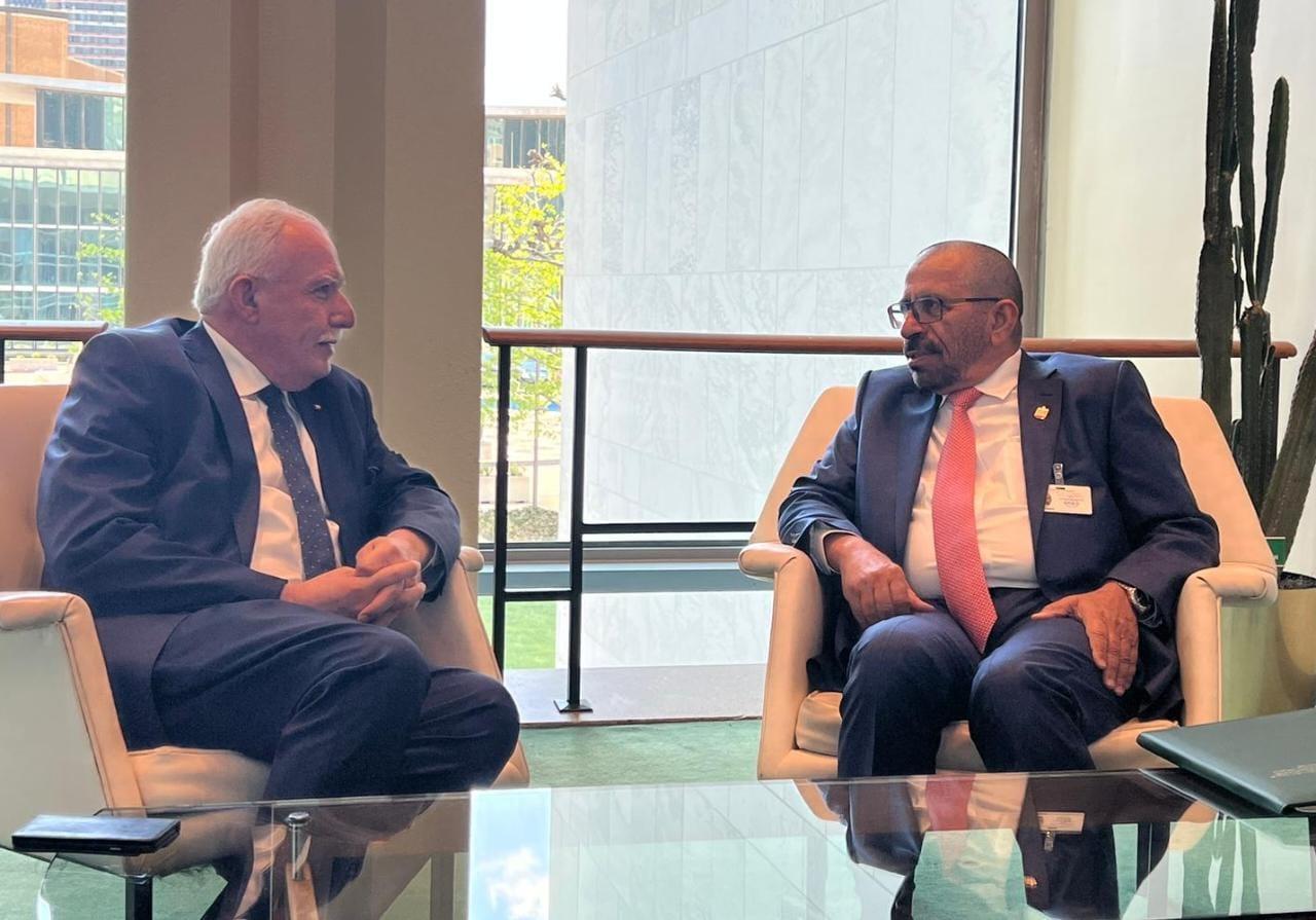 نيويورك 24-4-2023 وفا- التقى وزير الخارجية والمغتربين رياض المالكي، اليوم الإثنين، وزير الدولة للشؤون الخارجية الإماراتي خليفة شاهين المرر، والوزير المناوب لوزارة خارجية الغابون، هيرمان ايمونغولت، كلا على حده، وذلك خلال زيارته الى نيويورك للمشاركة في جلسة مجلس الأمن على المستوى الوزاري، والمخصصة للشرق الأوسط وقضية فلسطين.