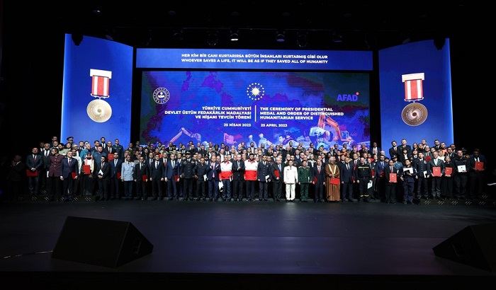 أنقرة 25-4-2023 وفا- كرم الرئيس التركي رجب طيب أردوغان، اليوم الثلاثاء، دولة فلسطين ممثلة بفريقها للتدخل والاستجابة لدعمها الإغاثي والإنساني لجهوده في مواجهة تداعيات الزلزال.