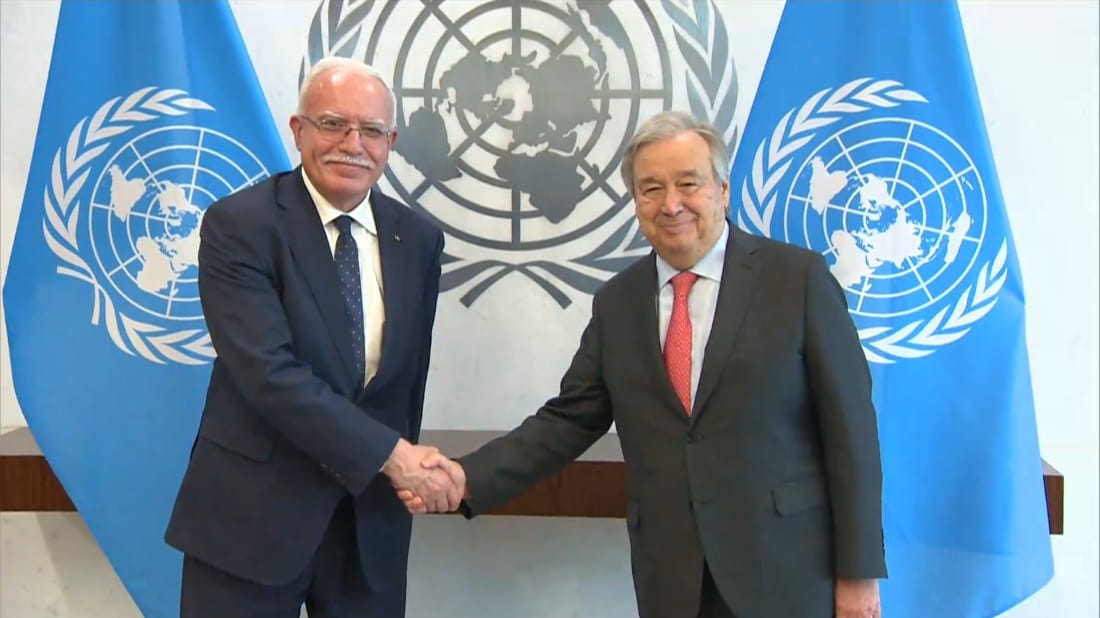 نيويورك 25-4-2023 وفا- أطلع وزير الخارجية والمغتربين رياض المالكي، اليوم الثلاثاء، الأمين العام للأمم المتحدة أنطونيو غوتيريش، على مجمل التطورات الفلسطينية.