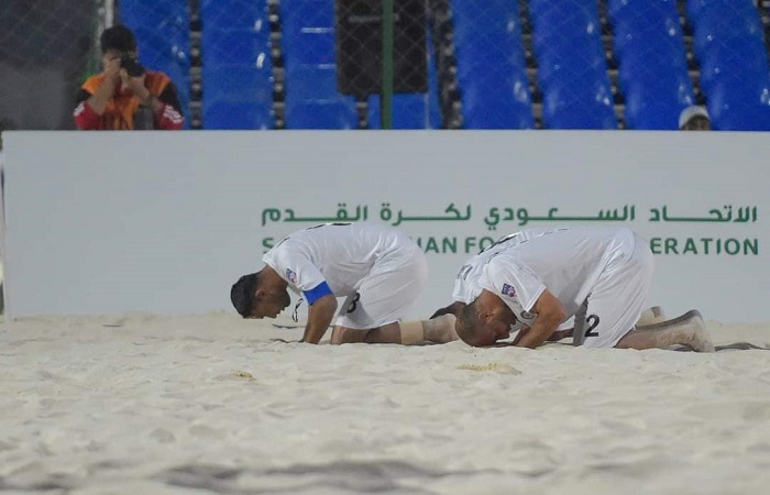جدة 18-5-2023 وفا- تأهل المنتخب الوطني لكرة القدم الشاطئية إلى ربع نهائي بطولة كأس العرب الرابعة، رغم خسارته أمام منتخب مصر 3-2، بعد حصوله على أفضل منتخب حاصل على المركز الثالث.