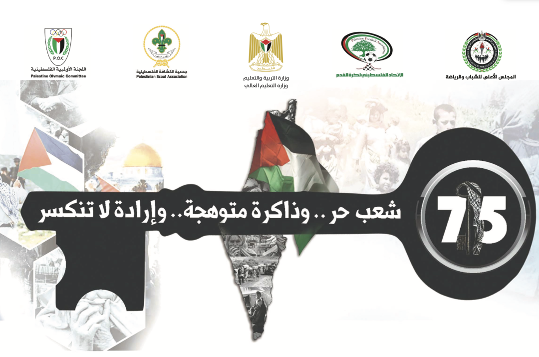 رام الله 2-5-2023 وفا- أطلقت المنظومة الرياضية الفلسطينية، بمكوناتها المجلس الأعلى للشباب والرياضة، واللجنة الأولمبية، واتحاد كرة القدم، وجمعية الكشافة والمرشدات، برنامج فعاليات إحياء ذكرى النكبة الـ 75، الذي سيقام على مدار شهر كامل، بالشراكة مع وزارتيّ التربية والتعليم، والتعليم العالي، وتمتد أنشطته لمختلف محافظات الوطن والشتات، تحت شعار "شعب حر.. وذاكرة متوهجة.. وإرادة لا تنكسر".