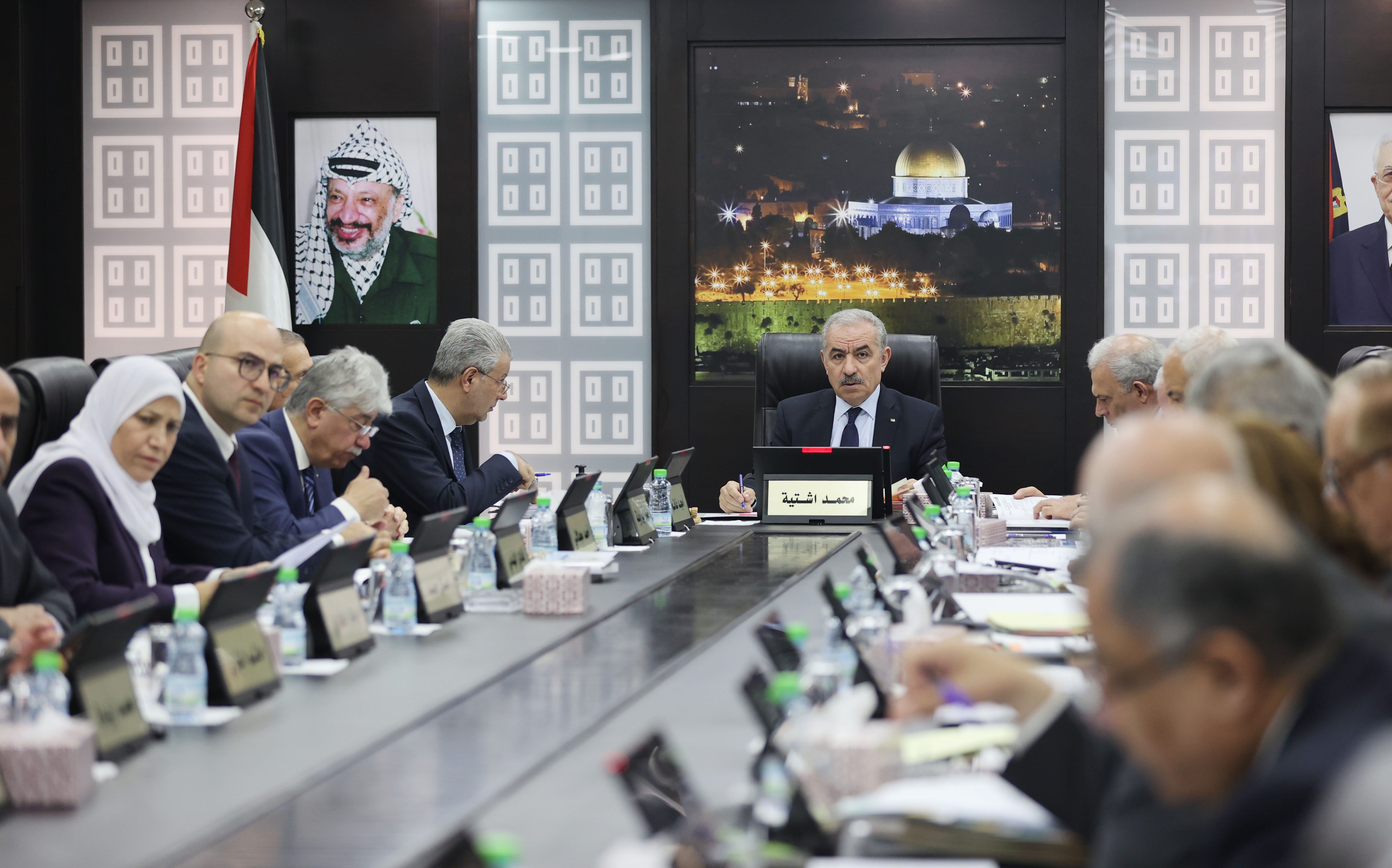 واستمع المجلس إلى تقرير من وزير الخارجية والمغتربين رياض المالكي حول الجهود الدبلوماسية المبذولة في الساحة الدولية لفضح الممارسات الإسرائيلية ضد شعبنا وتحشيد الجهد الدولي لقضيتنا العادلة.