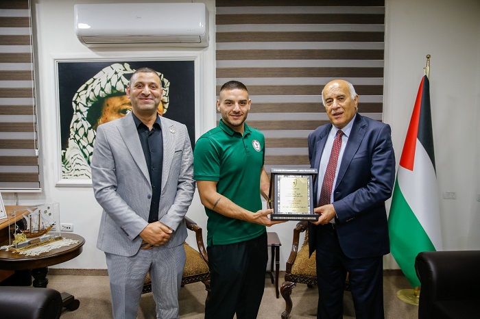 القدس 24-5-2023 وفا- كرّم رئيس اللجنة الأولمبية الفريق جبريل الرجوب، اليوم الأربعاء، منتخبنا الوطني للمواي تاي، الذي شارك مؤخرا في بطولة العالم للعبة في تايلند.