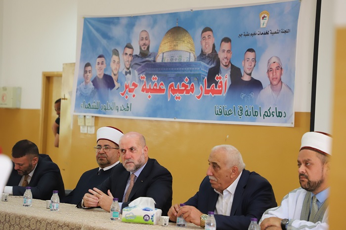 وبعد ذلك توجه الهباش وأبو العسل لمخيم عقبة جبر والتقى بأهالي شهداء المخيم الذي ارتقوا برصاص الاحتلال الإسرائيلي خلال عدوانه المستمر ضد أهالي المخيم، حيث أكد الهباش خلال اللقاء الذي تم في مقر اللجنة الشعبية لخدمات المخيم، بحضور رئيس اللجنة جمال عمر، أن الكلام يبقى عاجزا في حضرة الشهداء وأهالي الشهداء، معربا عن تعازيه الحارة لذوي الشهداء وعائلاتهم ولعموم أبناء مخيم عقبة جبر.
