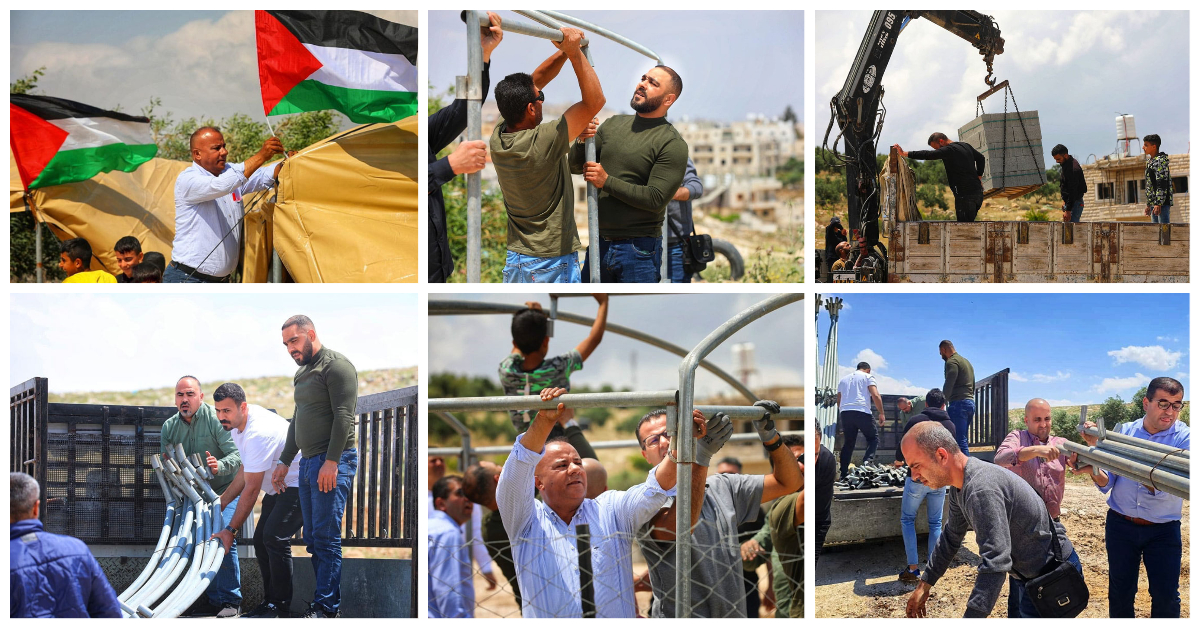 بيت لحم 7-5-2023 وفا- أعادت كوادر هيئة مقاومة الجدار والاستيطان وأهالي بيت تعمر، اليوم الأحد، بناء مدرسة الصمود والتحدي "5" شرق بيت لحم، التي هدمتها قوات الاحتلال الإسرائيلي فجر اليوم.