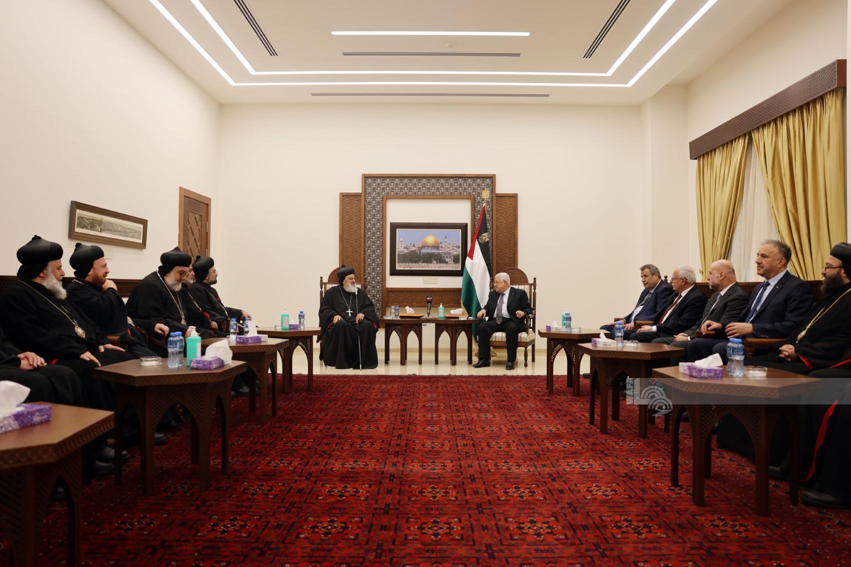 وأشار الرئيس، إلى حرص دولة فلسطين على تعزيز الوجود المسيحي الأصيل في الأراضي المقدسة، وتقديم الرعاية للكنائس.