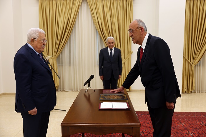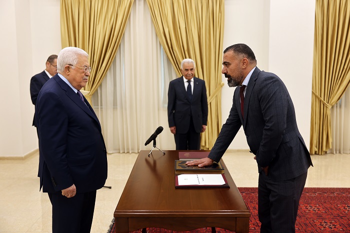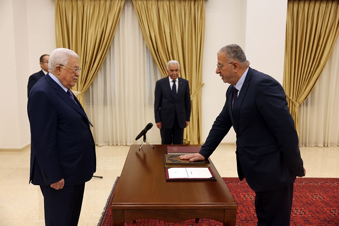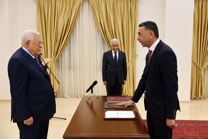 رام الله 1-6-2023 وفا- أدى القضاة، علي مهنا، وغسان فرمند، وعبد الرؤوف السناوي، وبشار دراغمة، اليوم الخميس، اليمين القانونية أمام رئيس دولة فلسطين محمود عباس، قضاة في المحكمة الدستورية العليا، وذلك بمقر الرئاسة في مدينة رام الله، بحضور رئيس مجلس القضاء الأعلى عيسى أبو شرار.