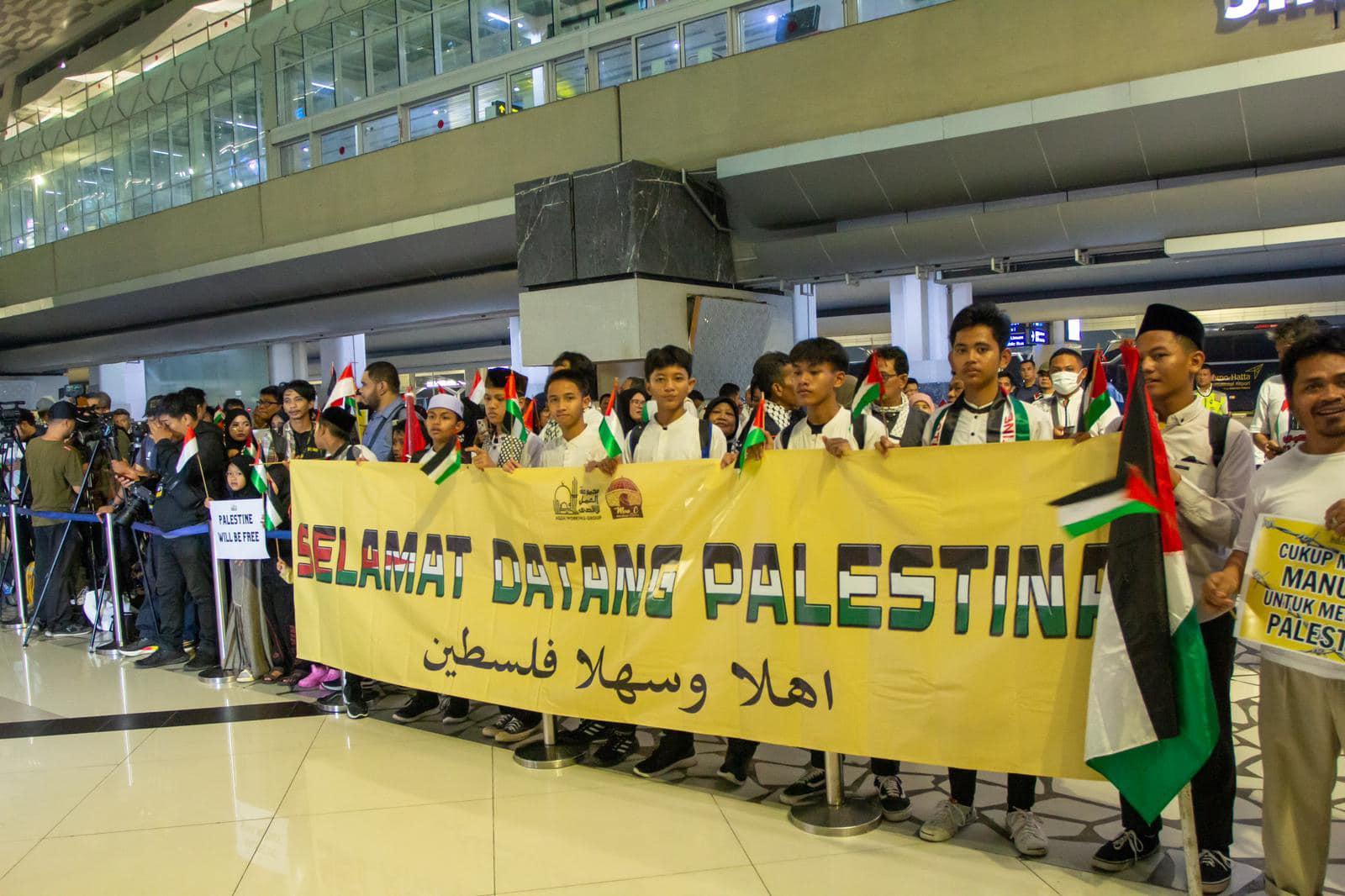 وكان في استقبال البعثة لدى وصولها، سفير دولة فلسطين في إندونيسيا، زهير الشن وطاقم السفارة، وحشد كبير من مناصري القضية الفلسطينية.