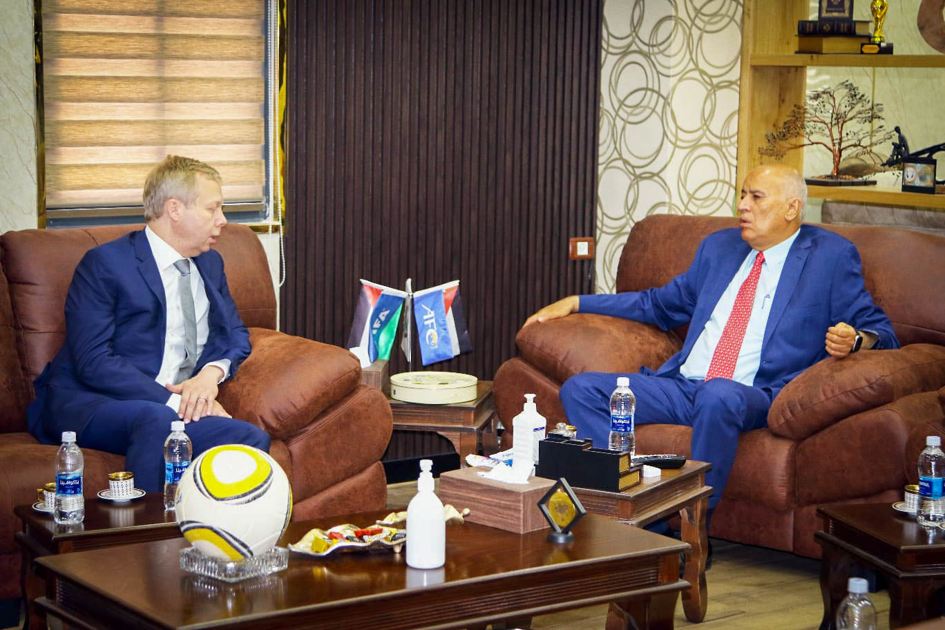 ووضع الرجوب ضيفه في صورة الوضع السياسي الحالي، والأوضاع الصعبة التي يواجهها أبناء شعبنا جراء انتهاكات وسياسات الحكومة الإسرائيلية أحادية الجانب بحق الأرض والمقدسات، وتنكرها لحقوق شعبنا وهويته، وتنصلها من التزاماتها تجاه الشعب الفلسطيني.