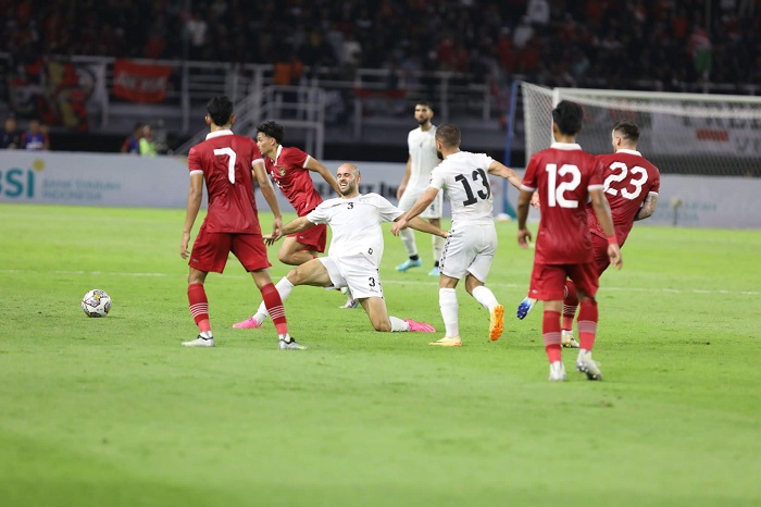 جاكرتا 14-6-2023 وفا- تعادل منتخبنا الوطني الأول لكرة القدم، مع نظيره الإندونيسي بدون أهداف، في المباراة الودية التي جمعتهما، اليوم الأربعاء، على استاد "جلوريا بونج تومو" الدولي في مدينة سوربايا ضمن أسبوع "فيفا".