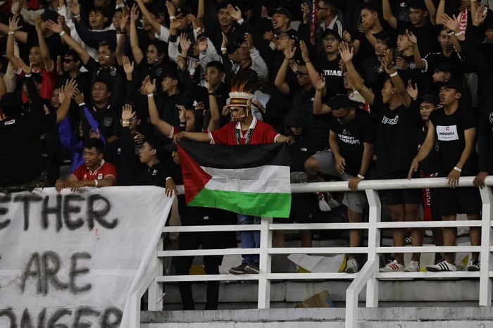 وامتلأت مدرجات الاستاد بالجمهور الإندونيسي، الذي شجّع المنتخبين على مدار شوطي المباراة، ورفعوا العلم الفلسطيني. في حين، جاءت المباراة متوسطة المستوى، مع أفضلية للمنتخب المضيف، الذي أهدر لاعبوه عدة فرص محققة للتسجيل في الشوط الأول.