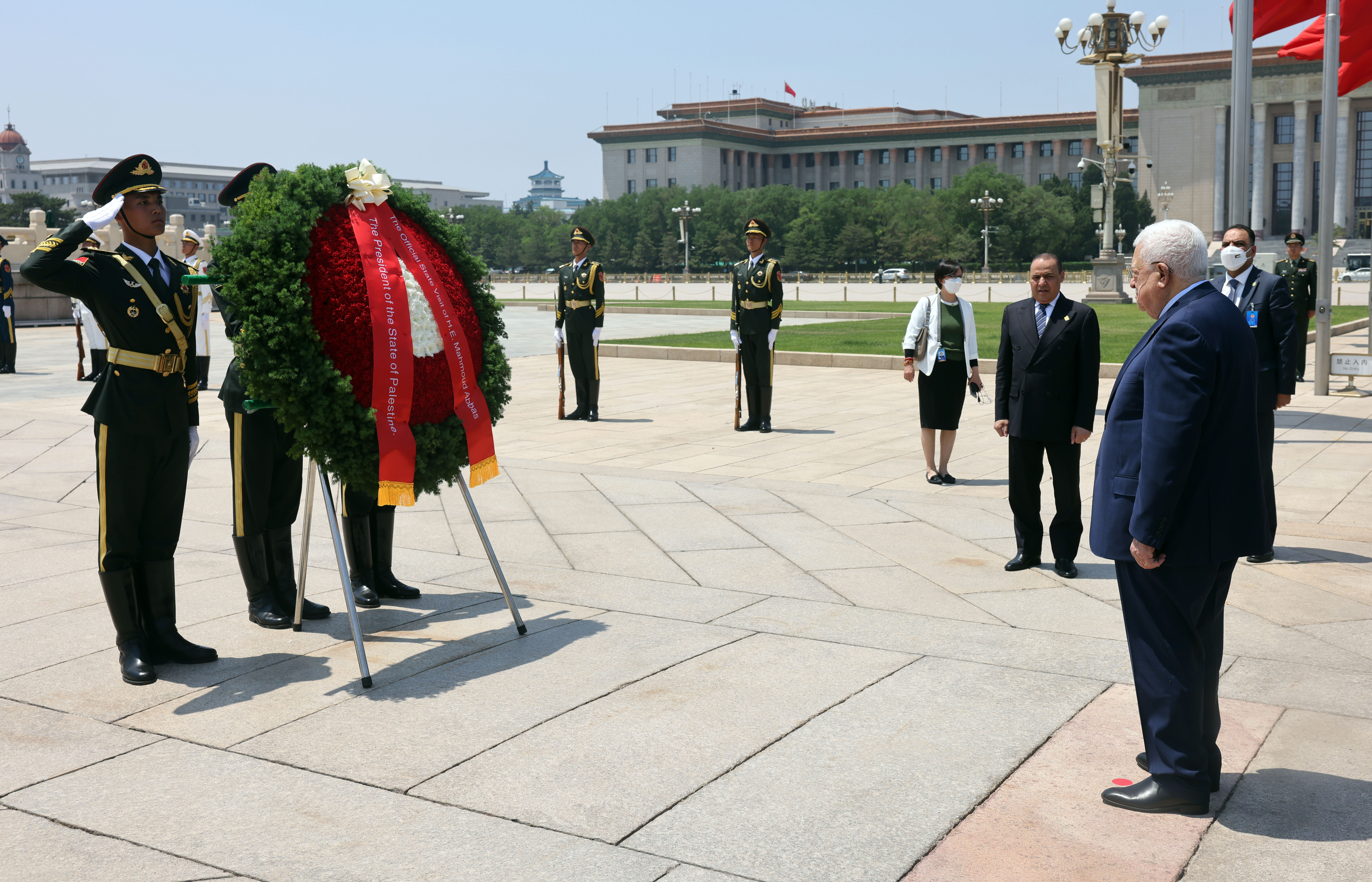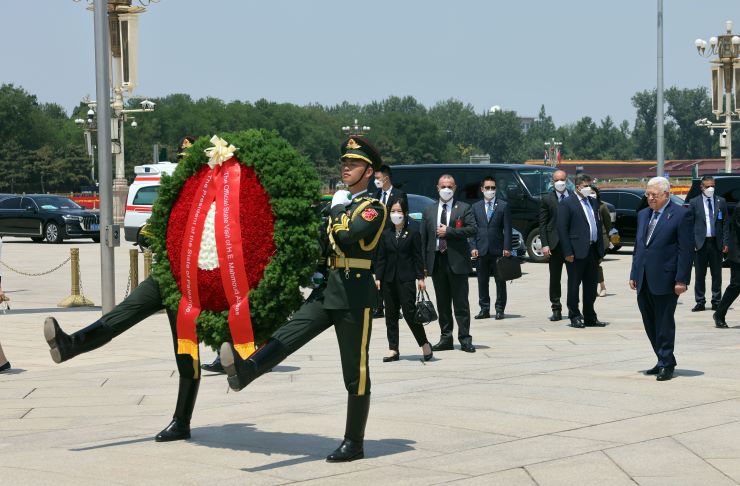 بكين 15-6-2023 وفا- وضع رئيس دولة فلسطين محمود عباس، اليوم الخميس، إكليلا من الزهور على النصب التذكاري لأبطال الشعب الصيني، وسط العاصمة بكين، والذي يخلد ذكرى من ضحَّوا بأرواحهم في سبيل استقلال الصين.