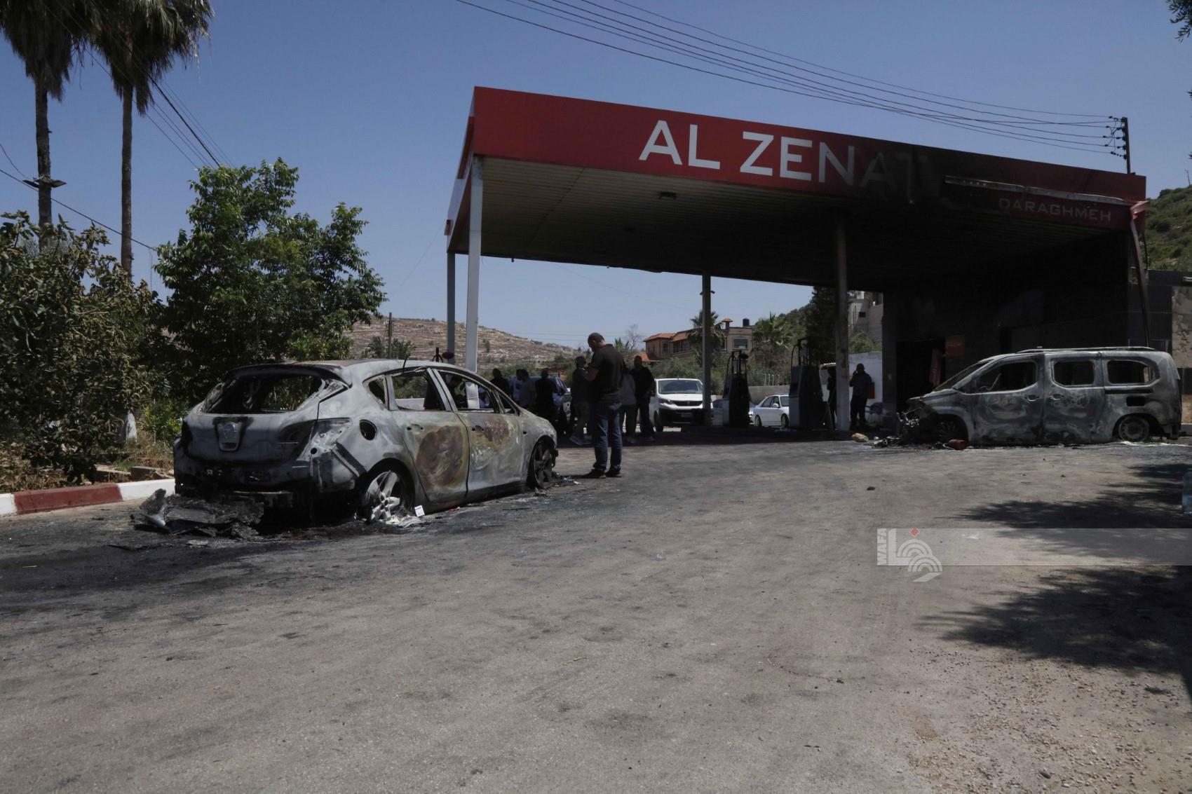 "شاهدت بأم عيني كيف أحرق المستوطنون السيارتين والمحطة دون أن يحرق الجيش وشرطة الاحتلال الذين كانوا متواجدين ساكنا"، يؤكد الأقرع لـ"وفا".