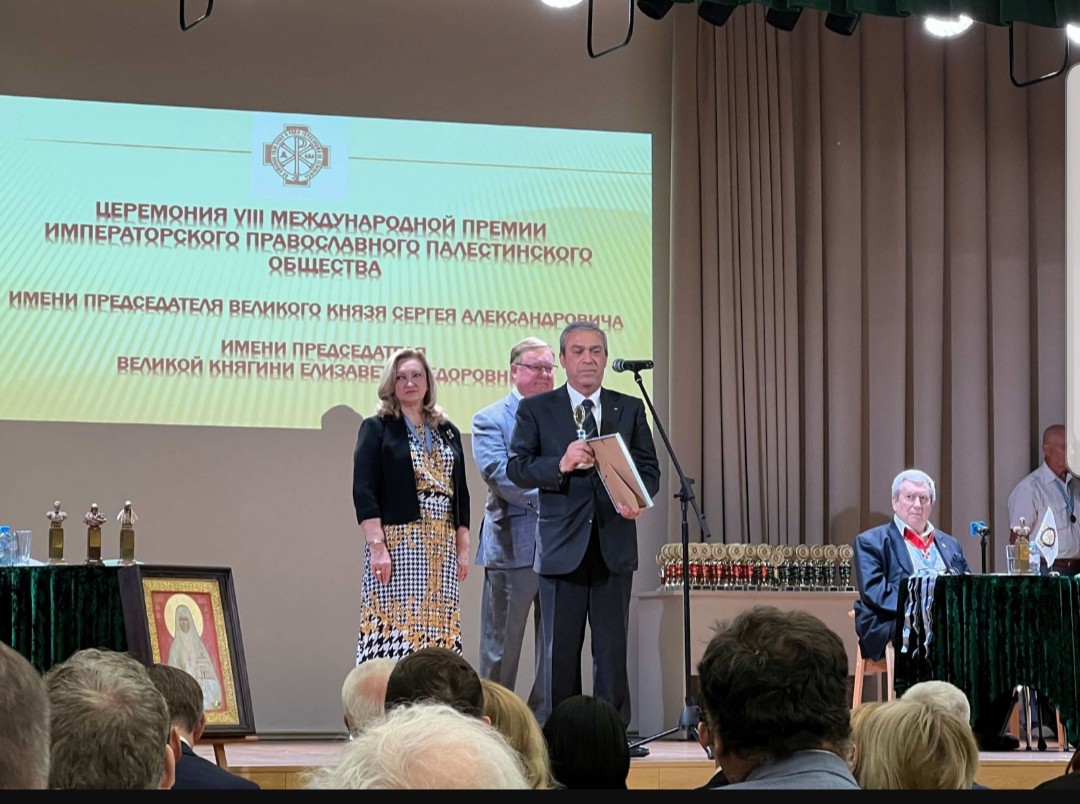 موسكو 22-6-2023 وفا- منحت الجمعية الإمبراطورية الأرثوذكسية الفلسطينية جائزة "الأمير العظيم سيرغي ألكسندروفيتش والأميرة العظيمة يليزافيتا فيودورفنا" لهذا العام، لسفير دولة فلسطين لدى روسيا الاتحادية عبد الحفيظ نوفل، ليصبح أول سفير فلسطيني أو أجنبي يحصل على هذه الجائزة المرموقة.