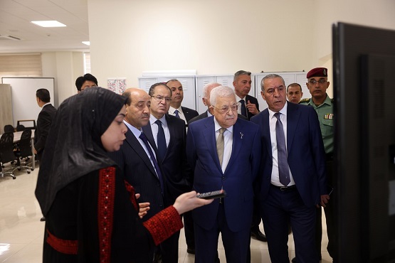 رام الله 26-6-2023 وفا- تفقد رئيس دولة فلسطين محمود عباس، اليوم الإثنين، المدرسة الوطنية الفلسطينية للإدارة، في بلدة أبو شخيدم، شمال غرب رام الله.