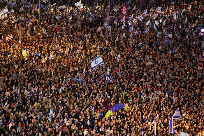 وتظاهر عشرات الآلاف من الإسرائيليين في تل أبيب وحيفا وكفار سابا وكريات شمونة وبئر السبع والخضيرة وروحوفوت ورمات غان ورمات هشارون وأور عكيفا وقيسارية وغيرها من المدن والبلدات ومفترقات الطرق.