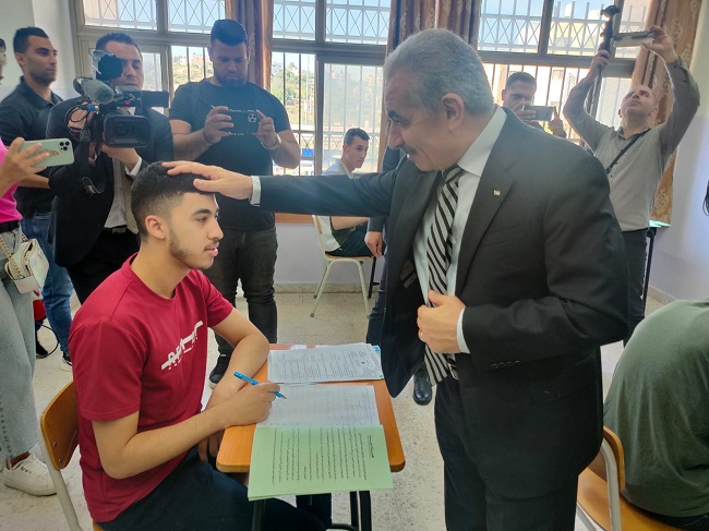 وأضاف اشتية: "سعيد أننا تفقدنا ومدراء التربية في كل محافظات الوطن، سير هذا الامتحان اليوم، الذي يجلس على مقاعده أبناء شعبنا من الطلبة حيثما كانوا، والجغرافيا الفلسطينية والديمغرافيا تكتملان بتوقيت واحد وبامتحان واحد وأسئلة واحدة".
