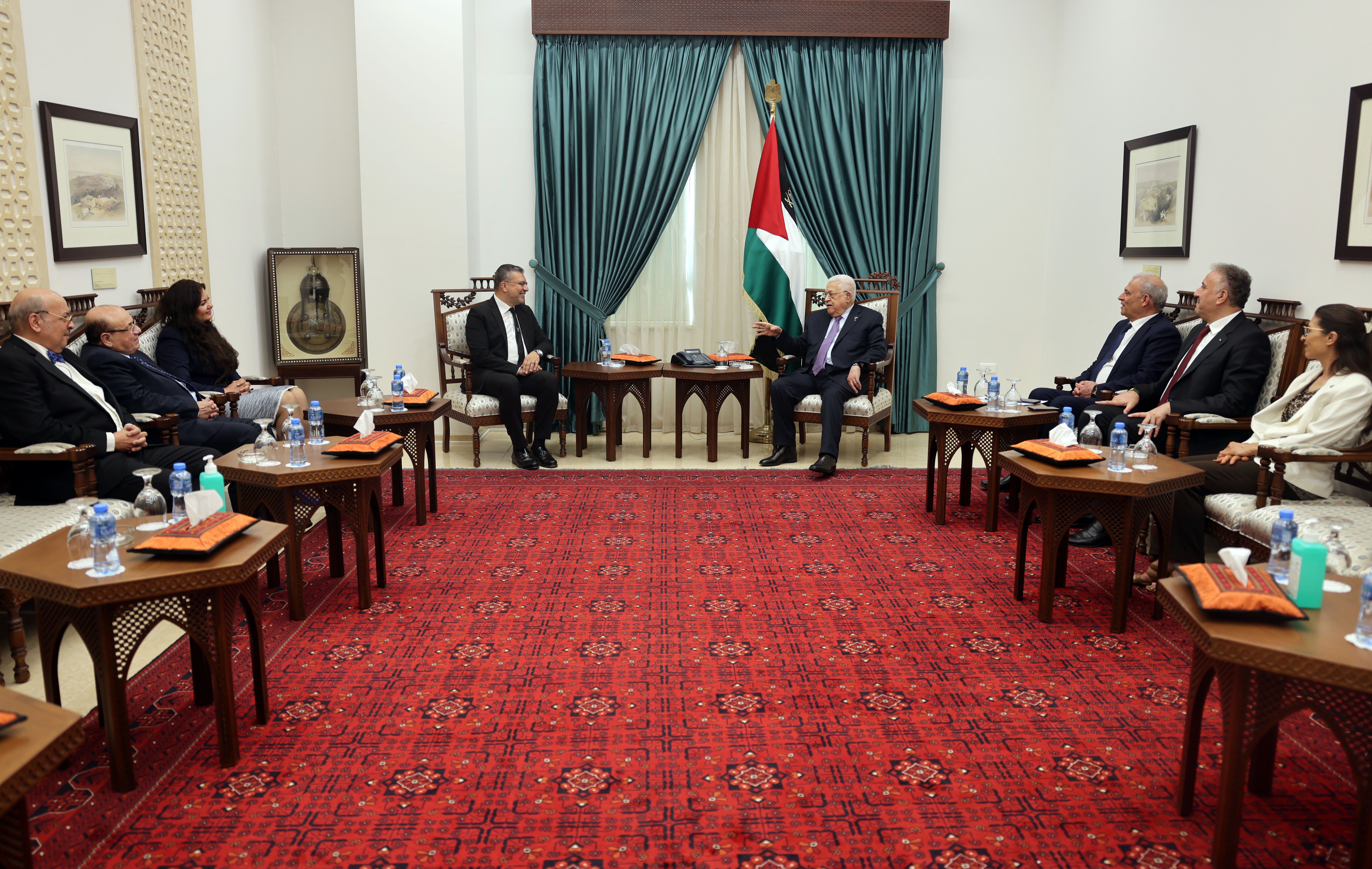 رام الله 7-6-2023 وفا- استقبل رئيس دولة فلسطين محمود عباس، مساء اليوم الأربعاء، بمقر الرئاسة في مدينة رام الله، رئيس اتحاد إذاعات وتلفزيونات دول منظمة التعاون الإسلامي عمرو الليثي، والمخرج الكبير مجدي أبو عميره، ومدير التصوير عادل عبساوي، بحضور المشرف العام على الإعلام الرسمي الوزير أحمد عساف.