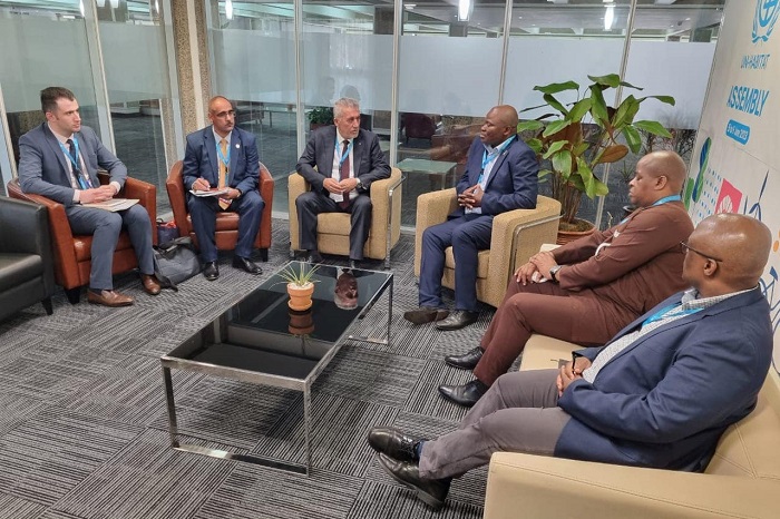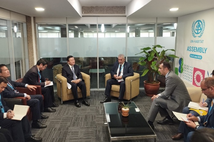 نيروبي 8-6-2023  وفا-  التقى وزير الحكم المحلي، مجدي الصالح، اليوم الخميس، عددا من الوزراء والسفراء والمسؤولين الدوليين على هامش أعمال الدورة الثانية لجمعية الأمم المتحدة للموئل التابعة لبرنامج الأمم المتحدة للمستوطنات البشرية، المنعقدة في العاصمة الكينية نيروبي.