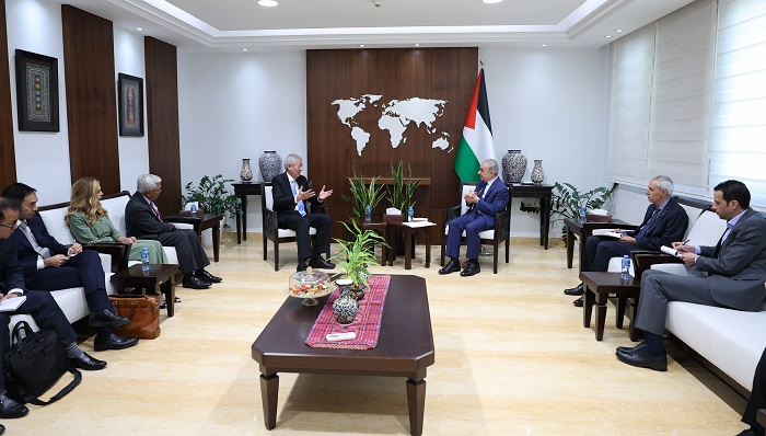 واستعرض اشتية مستجدات وتطورات الأوضاع في فلسطين في ظل انسداد الأفق السياسي، واستمرار إجراءات الحكومة الإسرائيلية المتطرفة وعدوانها على شعبنا، وتسارع وتيرة التوسع الاستيطاني، والاقتحامات المستمرة واليومية للمسجد الأقصى.