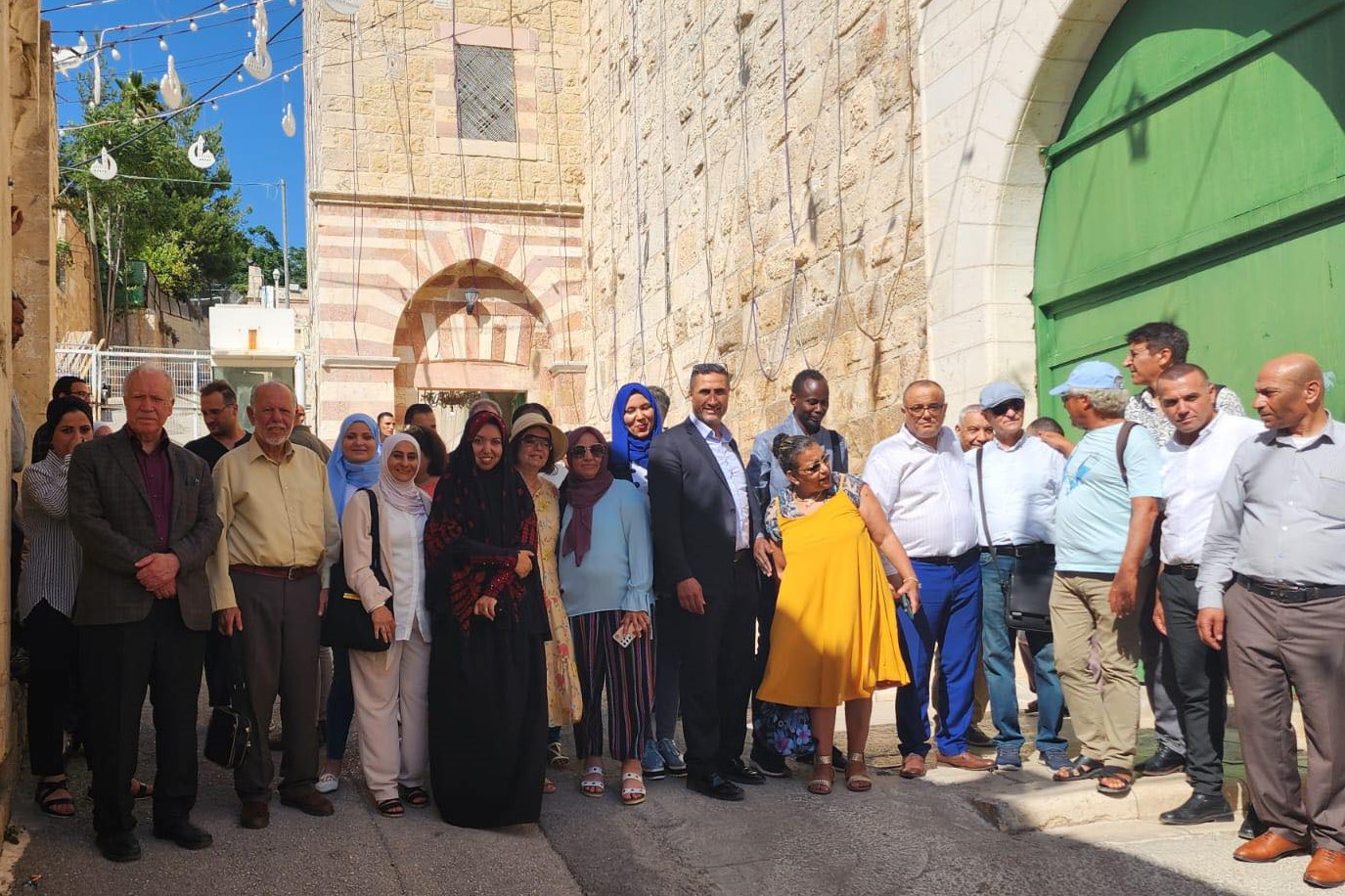 واختتم الوفد زيارته بجولة في البلدة القديمة والحرم الإبراهيمي، واطلع اعلى ما تتعرض له المنطقة من تهويد وسرقة لمبانيها وتراثها وثقافتها.