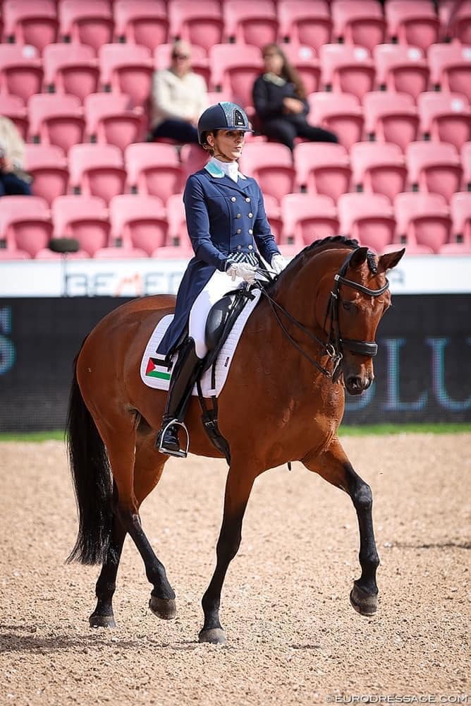 آخن (ألمانيا) 2-7-2023 وفا- مثّلت الفارسة ديانا رامي الشاعر، دولة فلسطين في بطولة آخن الدولية لترويض الخيل (الدريساج).