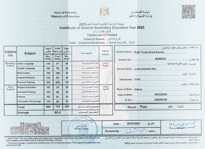 تحقق أخيرا حلم مجدي يونس عرعراوي بالتفوق في امتحانات الثانوية العامة، ونال علامة 90.4%، هذه العلامة التي كانت ستجعله قريبا من تحقيق حلمه في أن يصبح مهندسا إلكترونيا، فبدل أن تحتضنه والدته هذا اليوم، تعيش الآن ألم فقدانه بعد استشهاده خلال العدوان الأخير على مدينة جنين ومخيمها في الثالث من الشهر الجاري.