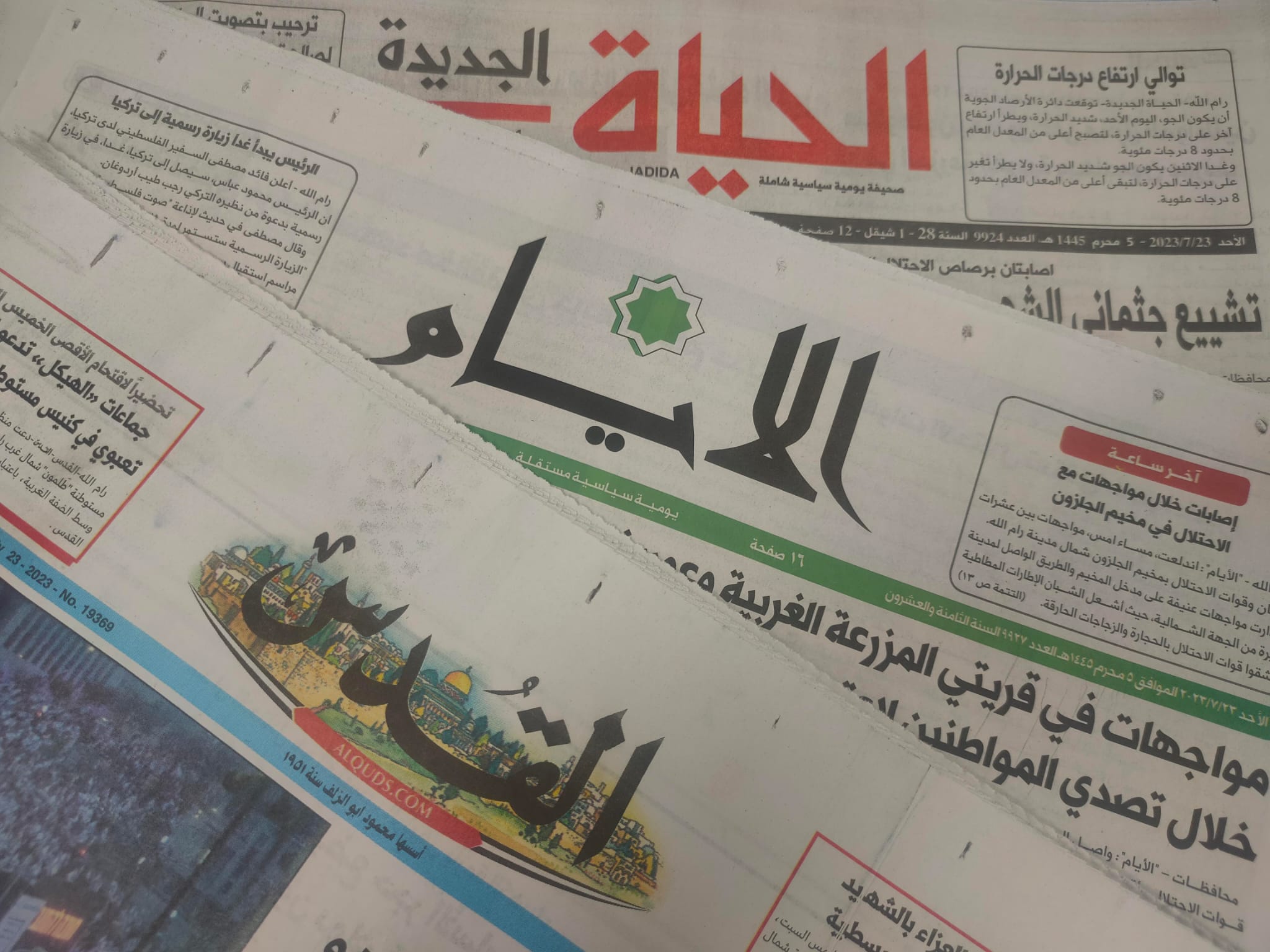 رام الله 23-7-2023 وفا- أبرزت الصحف الفلسطينية الثلاث (القدس، الحياة الجديدة، الأيام) الصادرة اليوم الأحد، تشييع شهيديْ سبسطية والجلزون، ومواجهات في قريتي المزرعة الغربية وعوريف خلال تصدي المواطنين لاعتداءات المستوطنين.