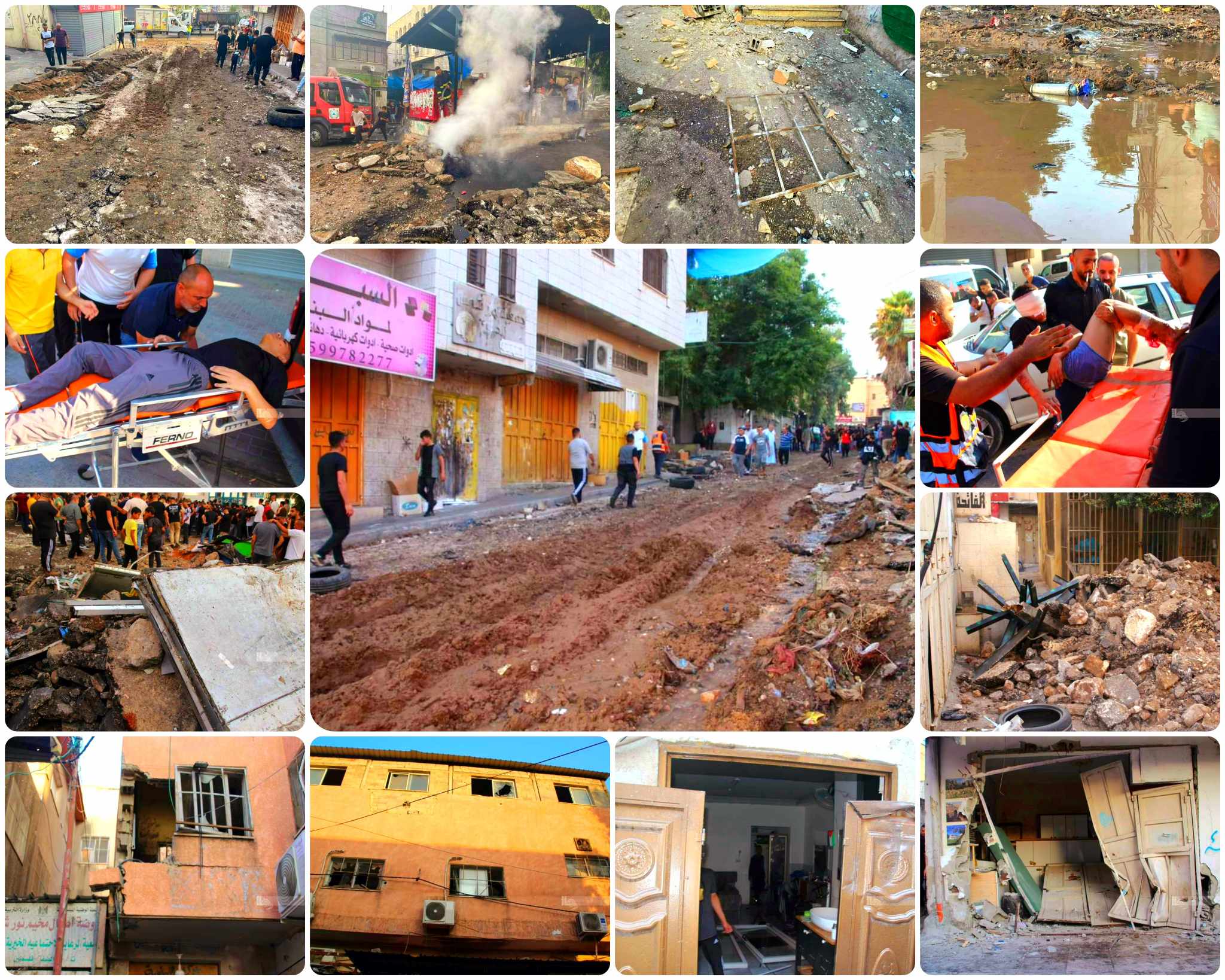 وأصيب أربعة مواطنين بالرصاص الحي، وتسعة آخرون بالشظايا، كما تعمدت قوات الاحتلال إلحاق أضرار مادية جسيمة بالبنية التحتية وممتلكات المواطنين، خاصة بشبكتي المياه والكهرباء والصرف الصحي، وتحديدا عند مدخل المخيم الرئيس، وفي شارع المدارس ومنطقة جبل النصر والمحجر والمنشية وشارع العيادة.
