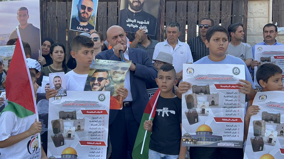 جنين 24-7-2023 وفا- نظّم المجلس الأعلى للشباب والرياضة، اليوم الاثنين، وقفة أمام الصليب الأحمر، دعماً واسناداً للحركة الأسيرة وللمطالبة بالإفراج عن جثامين الشهداء المحتجزة.