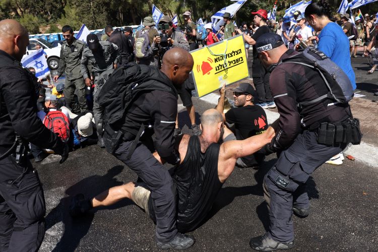 الشرطة الإسرائيلية تقمع محتجين ضد خطة إضعاف القضاء أمام مبنى الكنيست (تصوير: ا ف ب)
