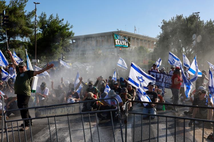 الشرطة الإسرائيلية تقمع محتجين ضد خطة إضعاف القضاء أمام مبنى الكنيست (تصوير: ا ف ب)