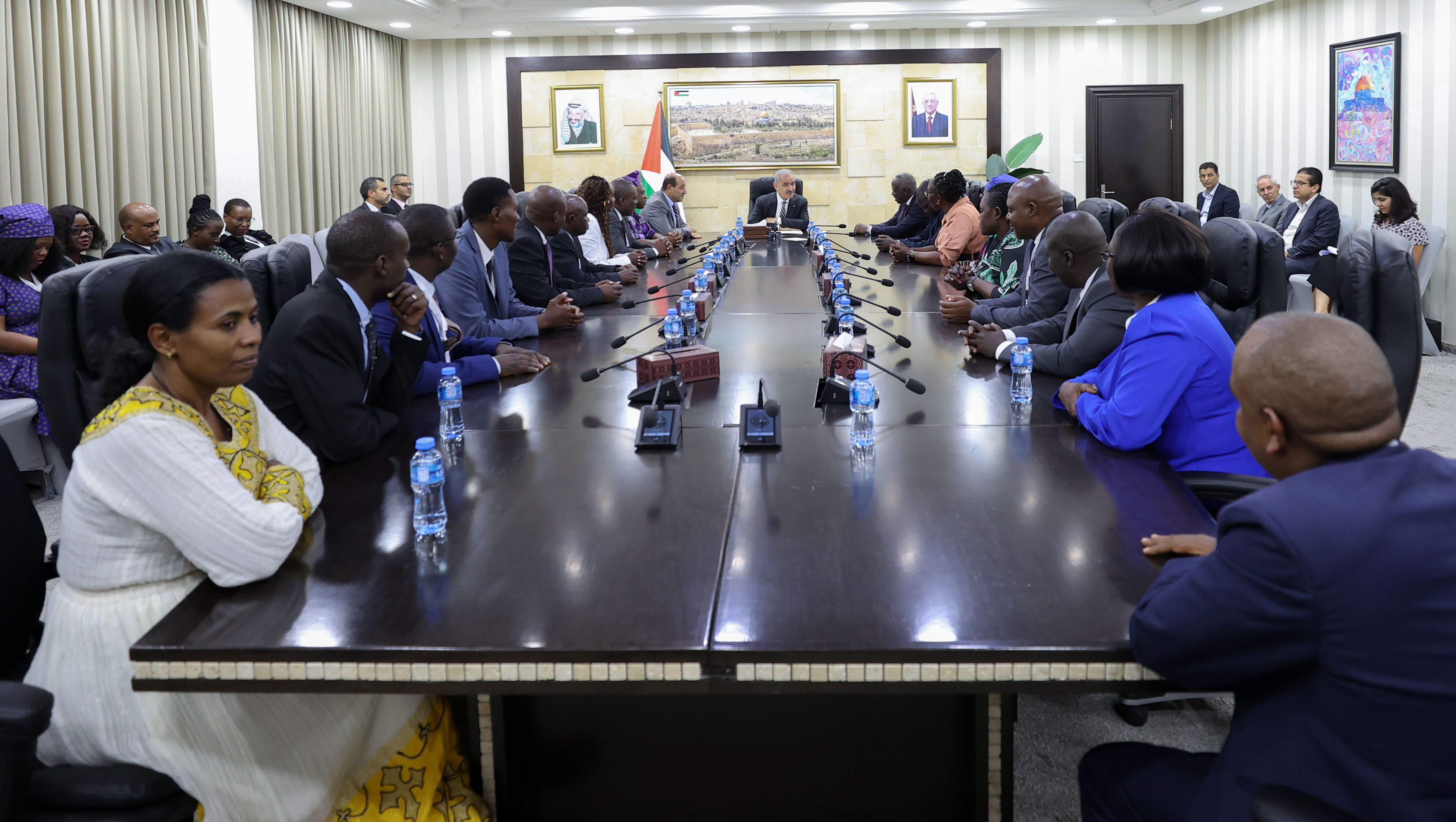 جاء ذلك خلال استقبال اشتية، اليوم الأربعاء، في مكتبه برام الله، وفدا ضم (25) موظفا حكوميا ممثلا لـ(12) دولة أفريقية صديقة، والذي هو في زيارة إلى فلسطين ضمن برنامج تعزيز قدرات الدول الإفريقية الصديقة الذي تعقده المدرسة الوطنية للإدارة، بحضور رئيس ديوان الموظفين العام موسى أبو زيد.