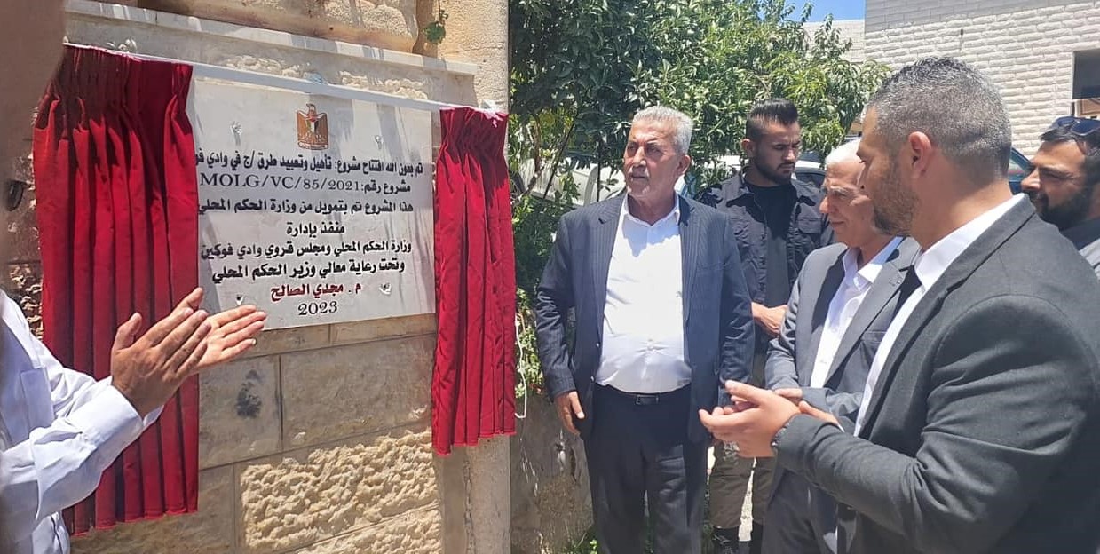 بيت لحم 26-7-2023 وفا- افتتح وزير الحكم المحلي مجدي الصالح، ومحافظ بيت لحم كامل حميد، عددا من المشاريع التطويرية في المحافظة، بقيمة 6 ملايين شيقل، وذلك خلال زيارة ميدانية اليوم الأربعاء، شملت بلدات العبيدية، وجناتا، وهندازة بريضعة وخلايل اللوز، وارطاس، وواد فوكين، ونحالين، ومراح معلا، ومخيم عايدة.