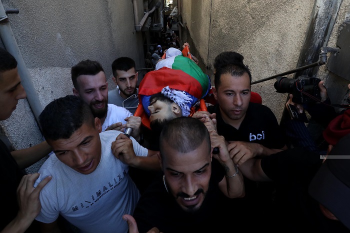 نابلس 26-7-2023 وفا- شيعت جماهير شعبنا في محافظة نابلس، اليوم الأربعاء، جثمان الشهيد محمد عبد الحكيم نعيم ندى (23 عاما) إلى مثواه الأخير في مخيم العين غربي المدينة.