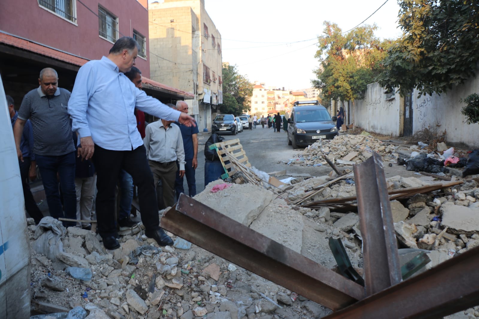 جنين 9-7-2023 وفا- تفقد الأمين العام للاتحاد العام لنقابات عمال فلسطين شاهر سعد، برفقة وفد نقابي من المحافظات الشمالية، أوضاع مخيم جنين، بعد العدوان الإجرامي الذي شنه الاحتلال الإسرائيلي عليه.
