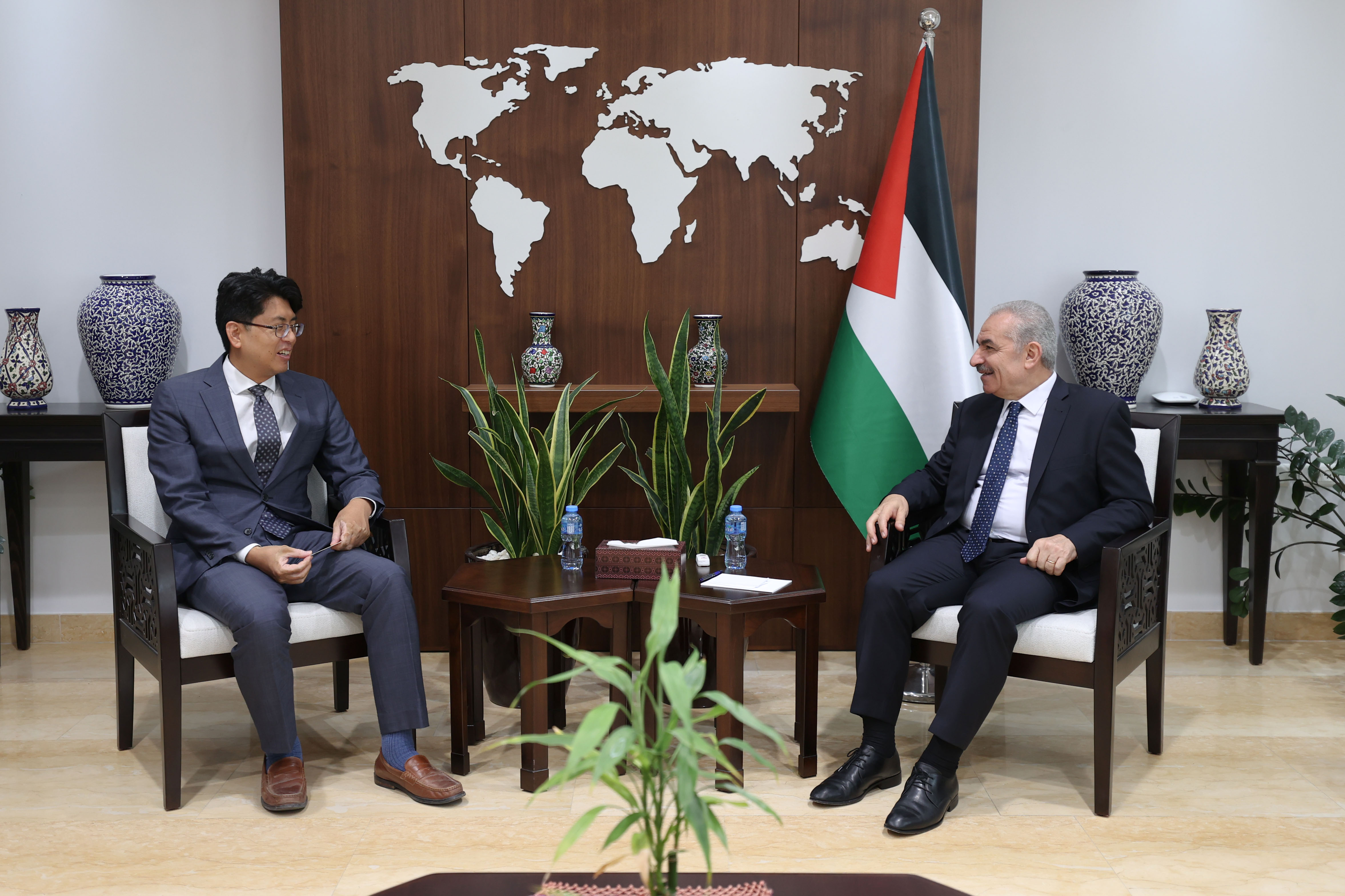 رام الله 1-8-2023 وفا- استقبل رئيس الوزراء محمد اشتية، اليوم الثلاثاء، في مكتبه برام الله، ممثل كوريا الجنوبية لدى فلسطين سونغ سي-جينغ، لمناسبة انتهاء مهامه الرسمية.