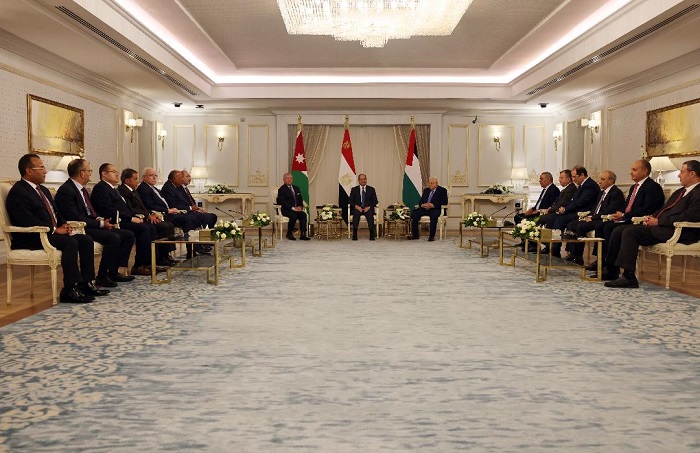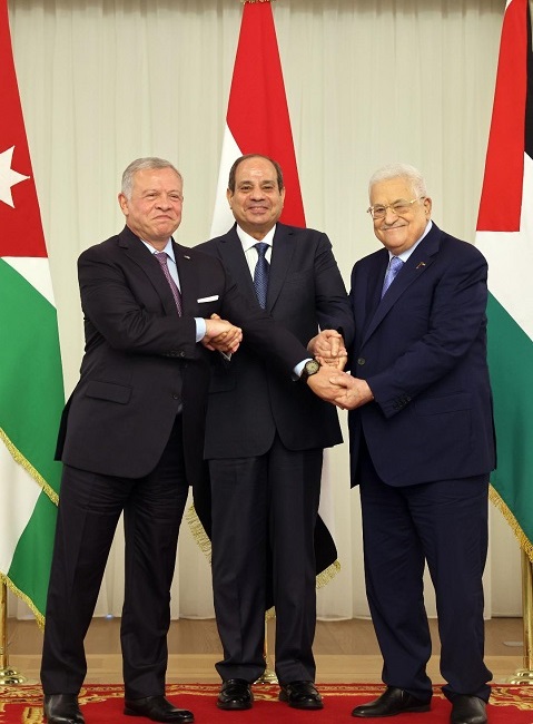 القمة الثلاثية تؤكد أن حل القضية الفلسطينية وتحقيق السلام العادل والشامل خيار استراتيجي وضرورة إقليمية ودولية