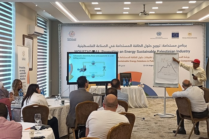 وتأتي ورشة العمل التدريبية التي نظمتها منظمة الأمم المتحدة للتنمية الصناعية (يونيدو) ضمن برنامج "مستدامة"، بالشراكة مع وزارة الاقتصاد الوطني، والاتحاد الأوروبي، وتستمر لثلاثة أيام، لتمكين تطبيقات حلول الطاقة المستدامة في الصناعات الفلسطينية، بحضور مجموعة من الخبراء والفنيين والمهنيين في مختلف المؤسسات الحكومية والخاصة والعاملة في قطاع الطاقة.