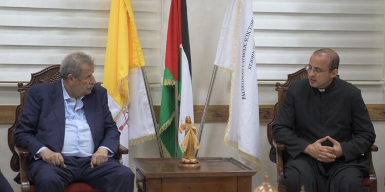 بيت لحم 26-8-2023 وفا- التقى عضو اللجنة التنفيذية لمنظمة التحرير، رئيس اللجنة الرئاسية العليا لمتابعة شؤون الكنائس في فلسطين رمزي خوري، راعي كنيسة العذراء فاطيما للاتين في بيت ساحور الأب عيسى حجازين، بحضور رئيس بلدية بيت ساحور هاني الحايك، وعدد من أعضاء وطاقم اللجنة الرئاسية، ولفيف من أبناء الكنيسة.