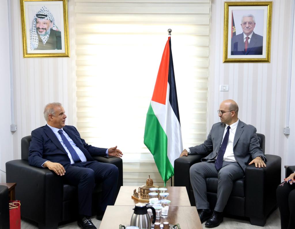 القدس 3-8-2023 وفا- بحث وزير شؤون القدس فادي الهدمي، اليوم الخميس، مع المدير المكلف بتسيير الأمور الجارية لوكالة بيت مال القدس الشريف محمد سالم الشرقاوي، مشاريع الوكالة في المدينة.