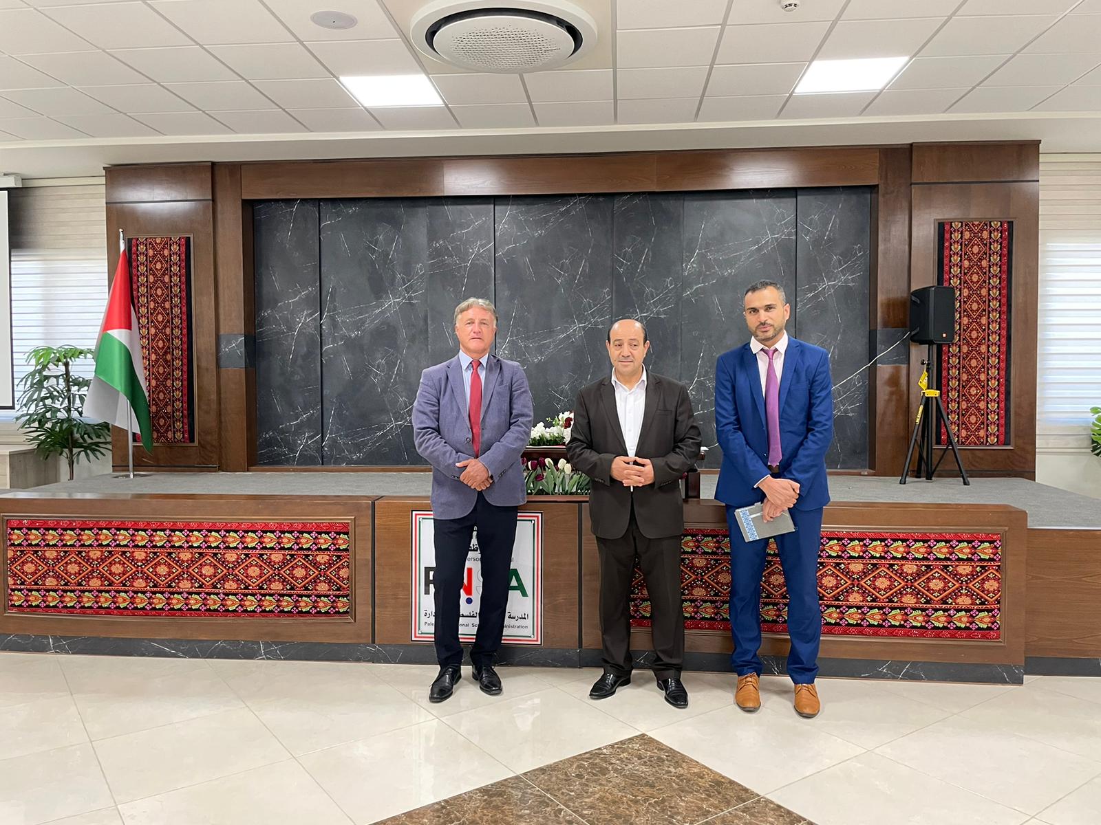 رام الله 7-8-2023 وفا- بحث رئيس مجلس إدارة المدرسة الوطنية للإدارة الوزير موسى أبو زيد، اليوم الإثنين، مع رئيس مكتب تمثيل جمهورية بلغاريا المعتمد لدى دولة فلسطين فيسيلين ديلتشيف، تعزيز التعاون.