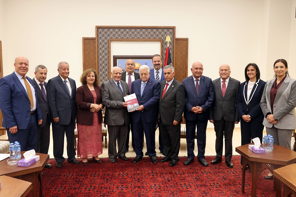 رام الله 9-8-2023 وفا- تسلم رئيس دولة فلسطين محمود عباس، التقرير السنوي لعام 2022 الصادر عن المجلس الأعلى للإبداع والتميز.