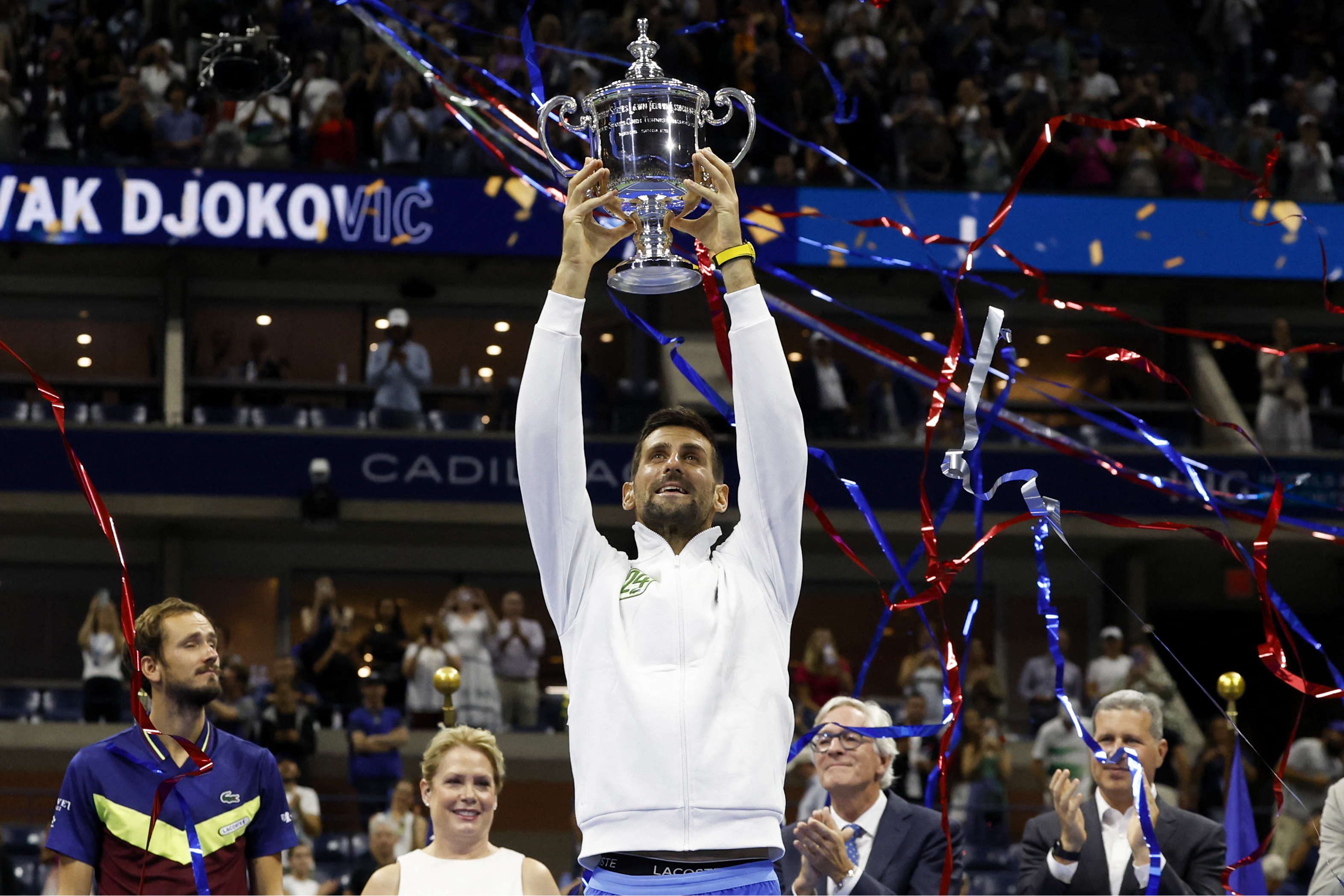 نيويورك  11-9-2023 وفا- عادل الصربي نوفاك ديوكوفيتش الرقم القياسي المطلق لعدد مرات إحراز الألقاب الكبرى في كرة المضرب (24)، بتتويجه الرابع في بطولة الولايات المتحدة اثر فوزه على الروسي دانييل مدفيديف بثلاث مجموعات نظيفة 6-3 و7-6 (7-5) و6-3.
