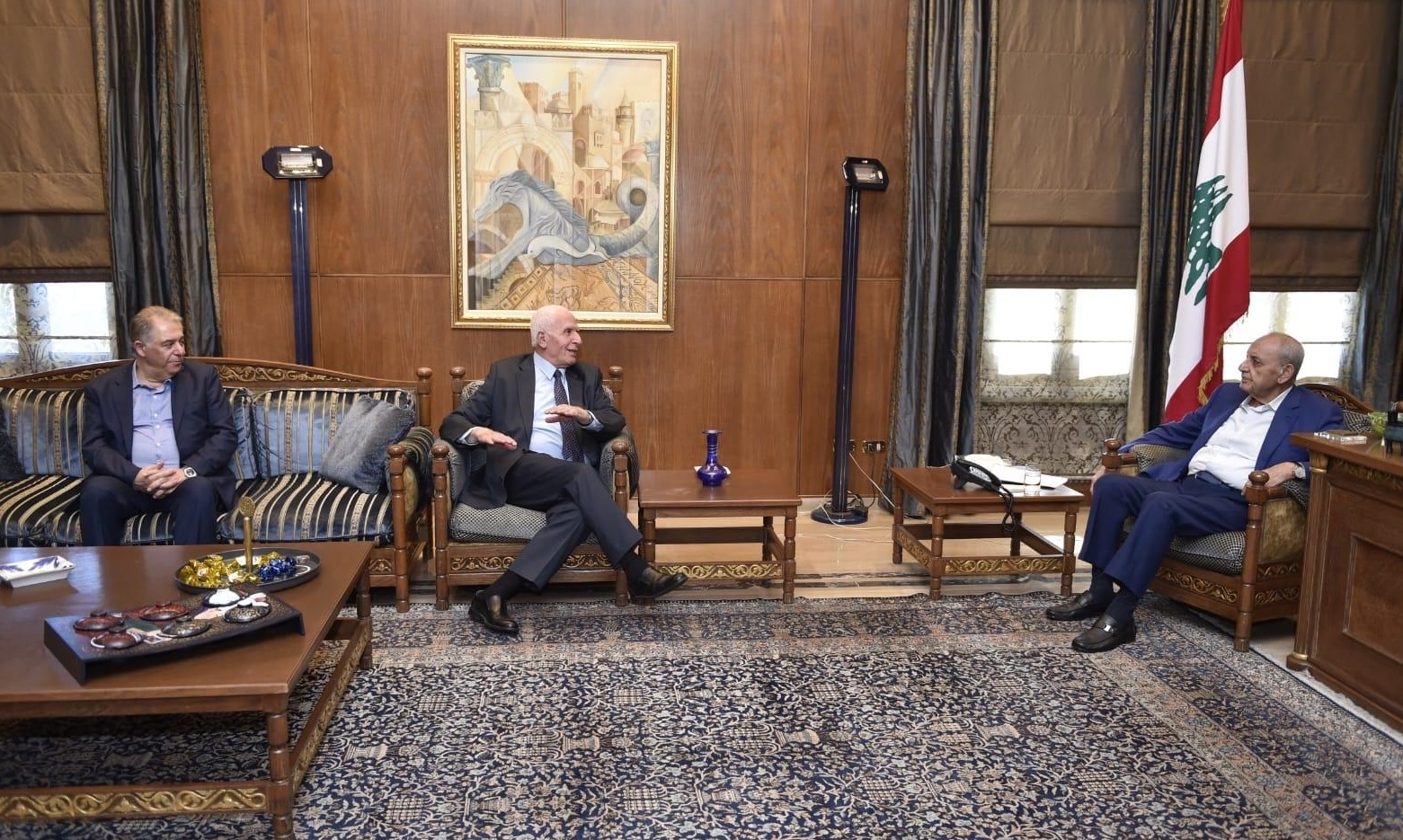 بيروت 14-9-2023 وفا- التقى عضو اللجنتين التنفيذية لمنظمة التحرير الفلسطينية والمركزية لحركة "فتح"، المشرف العام على الساحة اللبنانية عزام الأحمد، اليوم الخميس، رئيس مجلس النواب اللبناني نبيه بري، بحضور سفير دولة فلسطين لدى الجمهورية اللبنانية أشرف دبور، ومسؤول الملف الفلسطيني في حركة "أمل" محمد الجباوي، حيث جرى بحث التطورات في مخيم عين الحلوة.